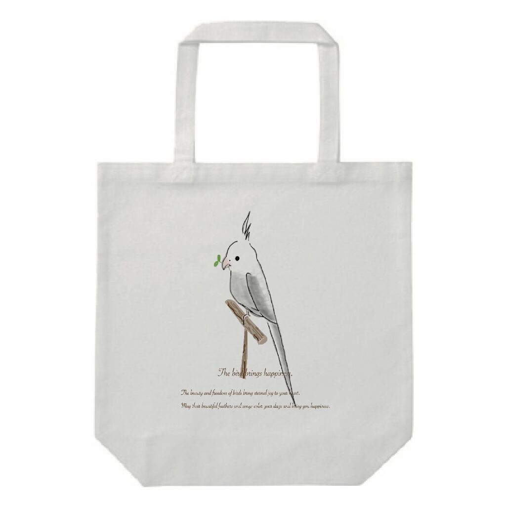 可愛らしいオカメインコのイラストが施されたトートバッグです。